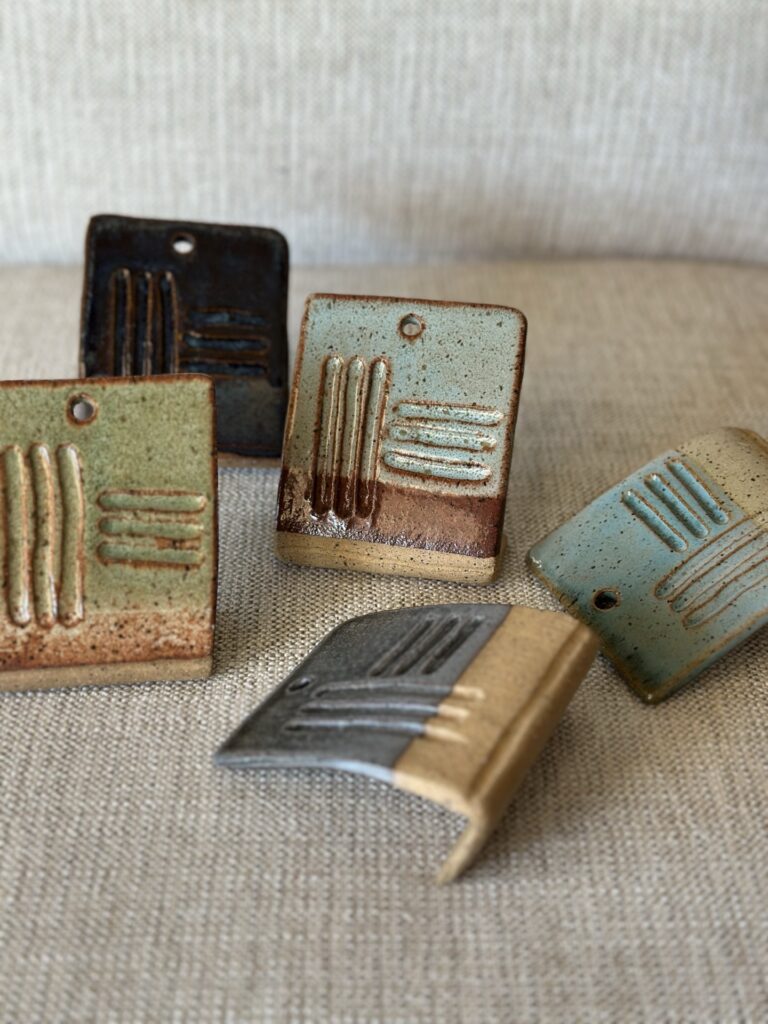 Glazing pottery is a whole other beast! I still have so much to do to get better at throwing pots but glazing is its own beast. I made these test tiles so I could figure out decent combos of different glazes. It’s important to me that I find a few go to glazes not just randomly glazed pots. I do keep track of everything I glaze with numbers on the bottoms of the pots. I do that since I’m still so new but I’m sure, eventually, I won’t need to keep track since it’ll be ingrained in my memory.